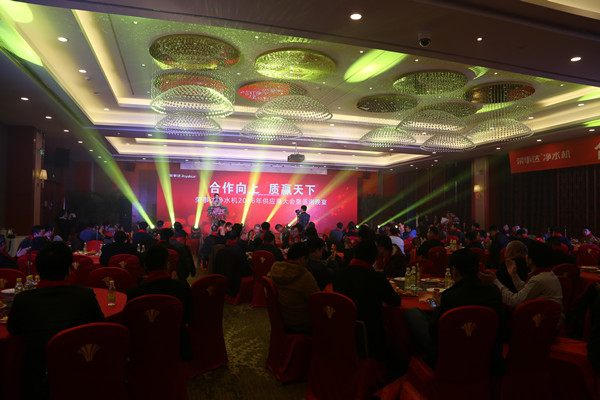1月17日下午,“合作向上 質(zhì)贏天下”榮事達(dá)凈水機(jī)2016年供應(yīng)商大會暨答謝晚宴在合肥北城世紀(jì)金源大酒店隆重舉行,來自全國的近百位供應(yīng)商企業(yè)代表應(yīng)邀出席。榮事達(dá)水工業(yè)公司董事長雷鳴、總經(jīng)理支新郁、生產(chǎn)制造中心總經(jīng)理孫曉峰、凈水家電事業(yè)部總經(jīng)理王悅生、工程事業(yè)部總經(jīng)理劉東及公司其他事業(yè)部負(fù)責(zé)人參加了會議。