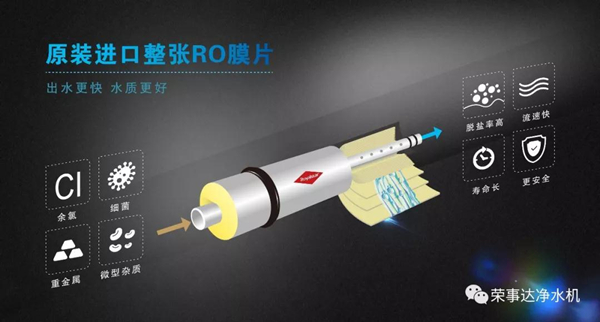 榮事達專注凈水十三年,向來以出眾的凈水效果聞名。此次400G智能反滲透凈水機融入五層凈化系統(tǒng)、高品質(zhì)椰殼活性炭濾芯等諸多先進工藝,尤其是在核心配件RO膜的選擇上,采用原裝進口整張RO膜片,性能遠遠超于市面上的碎膜壓制RO膜,凈化效果更佳,可充分去除水中余氯、細菌、重金屬等有害物質(zhì),出水可達直飲標(biāo)準(zhǔn)。