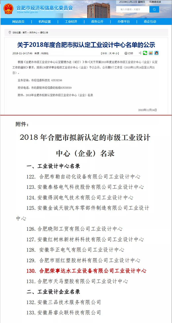 - 喜訊丨榮事達(dá)水工業(yè)公司獲評“合肥市市級工業(yè)設(shè)計(jì)中心”