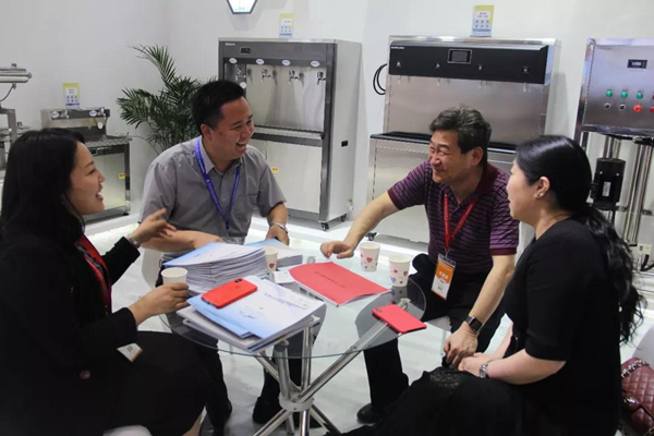 在主講區(qū),講解員小蔡就企業(yè)最新研發(fā)成果向記者做了詳細(xì)的介紹。他表示,信息網(wǎng)絡(luò)化的發(fā)展,使越來(lái)越多校園步入了“互聯(lián)網(wǎng)+”時(shí)代,而榮事達(dá)亦應(yīng)走在前列。比如,此次展會(huì)首次亮相的榮事達(dá)物聯(lián)網(wǎng)智能直飲機(jī),就實(shí)現(xiàn)了校園直飲水的物聯(lián)網(wǎng)嫁接,微信小程序后臺(tái)管理,微信、支付寶掃碼支付等等,讓校園師生取水更加方便。除此之外,在前幾個(gè)月召開(kāi)的教育部《學(xué)校直飲水設(shè)備運(yùn)維模式適用性研究》項(xiàng)目討論會(huì)上,榮事達(dá)開(kāi)發(fā)的“校園直飲水智慧管理系統(tǒng)”以創(chuàng)新獨(dú)特的云端運(yùn)維管理,也得到與會(huì)領(lǐng)導(dǎo)和行業(yè)專家的一致肯定。
