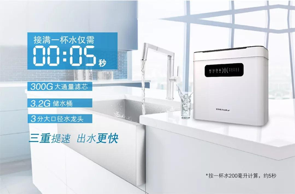 現(xiàn)代快節(jié)奏的生活下,人們對于“速度”的追求越發(fā)執(zhí)著。此次,榮事達發(fā)布的300G智能反滲透凈水機在出水速度提升上可謂是“不走尋常路”。其創(chuàng)新采用“大通量+大‘桶’量+大口徑龍頭”三重提速設計,一方面選用“300加侖超大通量濾芯”,出水速度達到傳統(tǒng)50G凈水機的6倍;另一方面,用戶可DIY選裝3.2加侖儲水桶,搭配三分大口徑凈水龍頭,進一步強化出水效率,接滿一杯200毫升水僅需5秒,讓用戶隨時享受不等待、不斷水的理想生活。