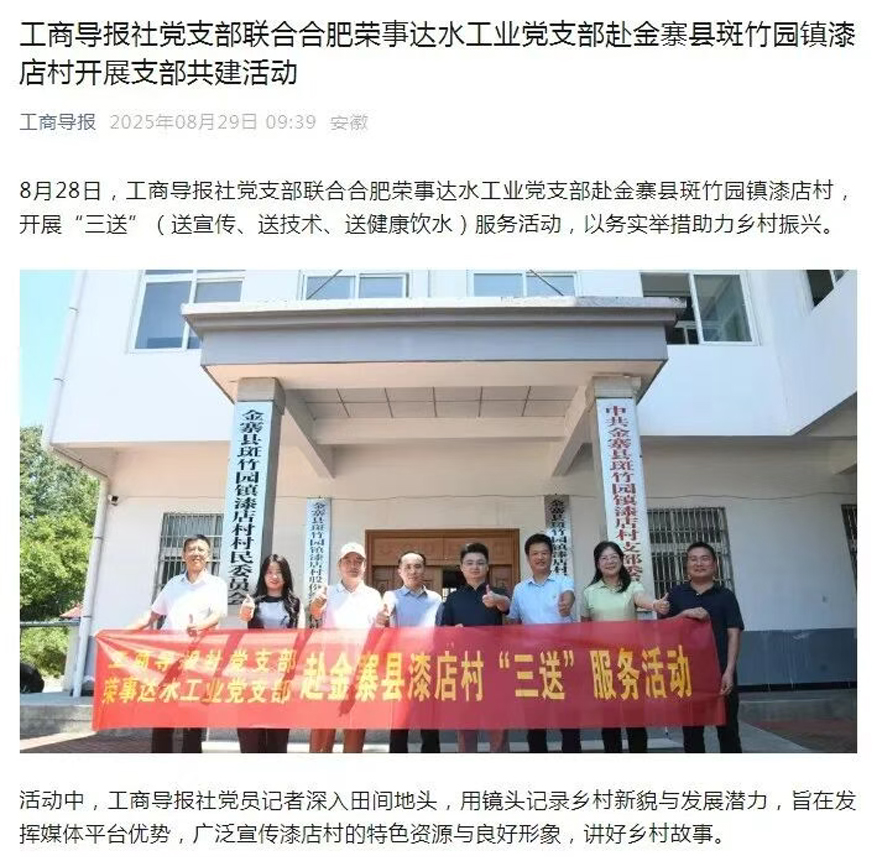 工商導(dǎo)報(bào)社黨支部聯(lián)合合肥榮事達(dá)水工業(yè)黨支部赴金寨縣斑竹園鎮(zhèn)漆店村開(kāi)展支部共建活動(dòng)