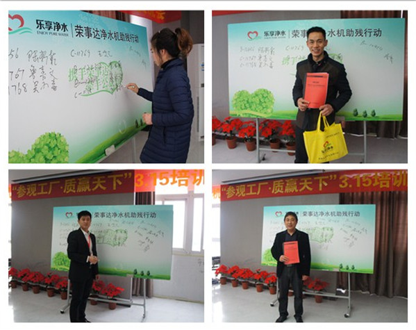 與會的許多意向客戶在一天半的觀摩、學習中,了解了榮事達水工業(yè)公司的過硬的軟、硬實力,見證了榮事達凈水機卓越的產(chǎn)品質(zhì)量和完善的售后保證,更感受了公司作為凈水名企的品牌信譽、行業(yè)地位、社會擔當。會后,近九成意向客戶立即簽訂了合作協(xié)議,與榮事達攜手合作。為了酬謝廣大客戶,榮事達精心準備了四輪抽獎環(huán)節(jié),多款精美禮品悉數(shù)送出。其中,20多位合作客戶在終極大獎環(huán)節(jié)幸運抽得公司精心準備的4套凈水設備,用于開展“樂享凈水”助殘行動。