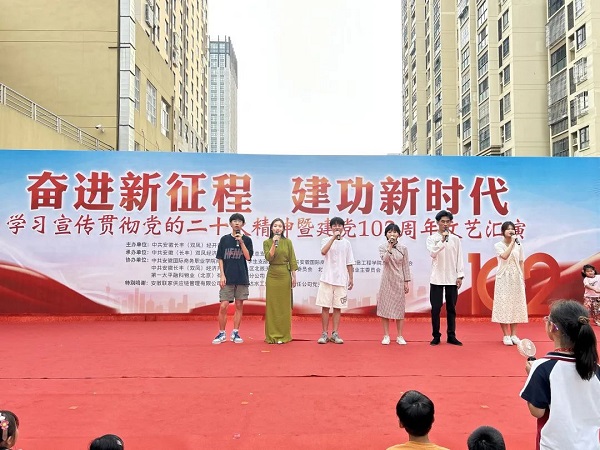 當(dāng)日正值中共安徽長(zhǎng)豐(雙鳳)經(jīng)開區(qū)工作委員會(huì)、中共安徽(長(zhǎng)豐)雙鳳經(jīng)濟(jì)開發(fā)區(qū)鳳巢社區(qū)總支部委員會(huì)舉辦學(xué)習(xí)宣傳貫徹黨的二十大精神暨建黨102周年文藝匯演,榮事達(dá)水工業(yè)公司黨支部受邀參加了此次活動(dòng)。