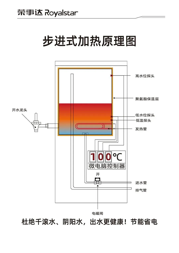 設(shè)備采用了RO反滲透技術(shù)、多級凈化等工藝,有效去除了水中的泥沙、鐵銹、重金屬、余氯等有害物質(zhì),確保水質(zhì)干凈、安全。同時,步進(jìn)式加熱設(shè)計避免了“陰陽水”的產(chǎn)生,保證了連續(xù)供應(yīng)開水的品質(zhì)。