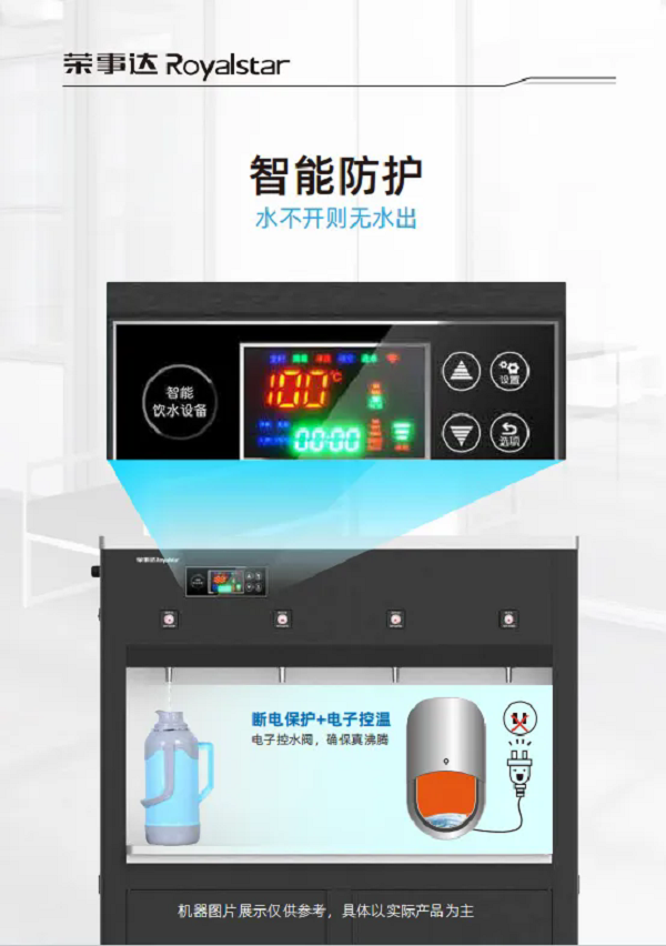 設(shè)備采用節(jié)能熱交換技術(shù),熱損低,更節(jié)能;保溫結(jié)構(gòu)設(shè)計,保溫效果好。六個水龍頭設(shè)計,有效應(yīng)對飲水量大與飲水集中的問題,確保供水順暢。五級過濾,RO反滲透技術(shù),有效濾除水中的泥沙、鐵銹、重金屬、余氯等有害物質(zhì),確保水質(zhì)干凈;智能防護功能,斷電保護、電子控溫、七重保護,可充分保障師生使用安全。
