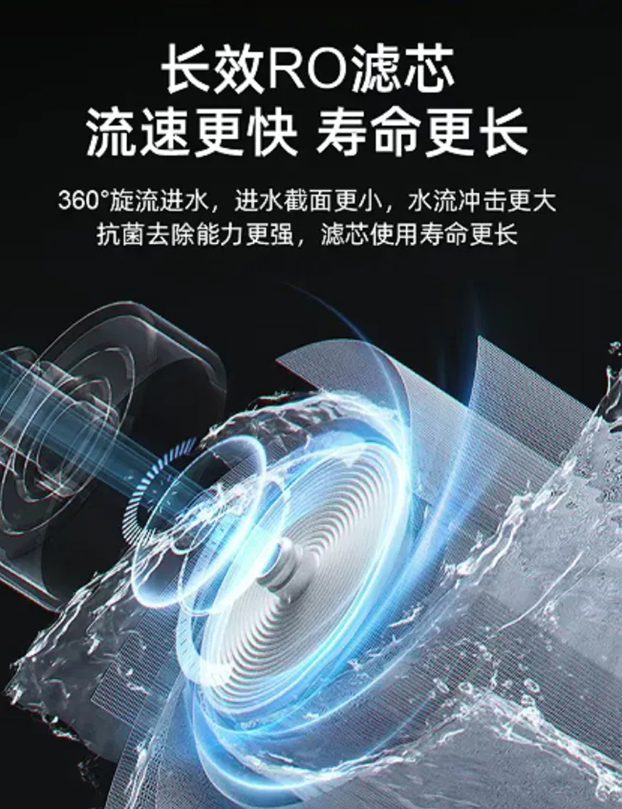 核心采用3芯5級(jí)過(guò)濾、RO反滲透技術(shù),強(qiáng)力濾除重金屬、細(xì)菌等有害物質(zhì)。同時(shí),其 360° 旋流進(jìn)水設(shè)計(jì),可實(shí)現(xiàn)更快流速,延長(zhǎng)使用壽命,且抗菌去除能力更強(qiáng)。貼心升級(jí)大孔徑出水龍頭,接滿(mǎn)一杯僅需數(shù)秒,告別涓涓細(xì)流的漫長(zhǎng)等待。