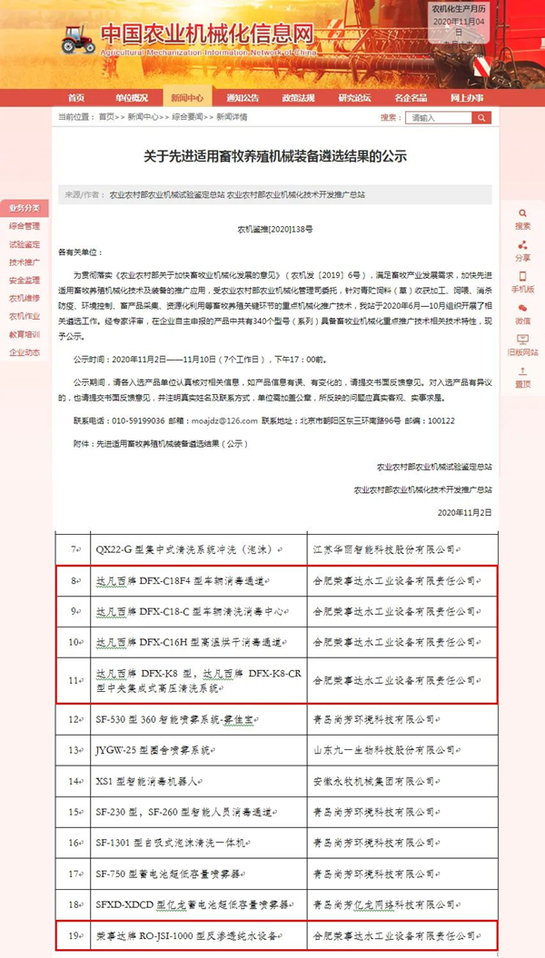 重磅!榮事達(dá)反滲透純水設(shè)備、防疫洗消設(shè)備成功入選國(guó)家農(nóng)業(yè)農(nóng)村部先進(jìn)適用畜牧養(yǎng)殖機(jī)械裝備遴選名單