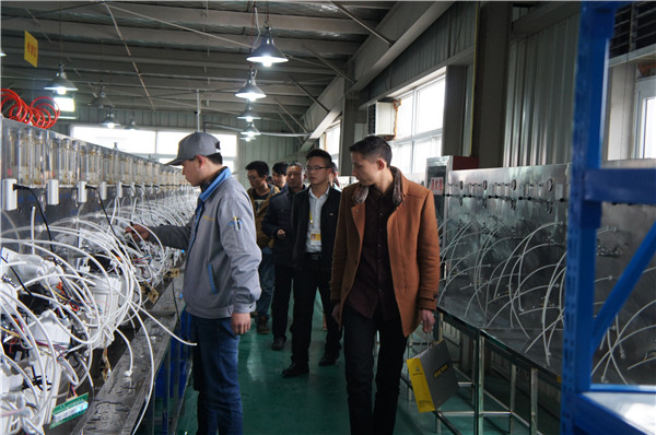 在產(chǎn)品展廳,華中大區(qū)總監(jiān)劉明明為參觀人員介紹了公司產(chǎn)品種類(lèi)、功能,并分析了凈水行業(yè)的現(xiàn)狀和發(fā)展前景。之后,一行十余人參觀了園區(qū),看到整齊停放的服務(wù)車(chē),參觀者連連稱(chēng)贊公司這一加盟政策給力,既方便了代理商跑市場(chǎng),又是十分有效的宣傳方式。在生產(chǎn)車(chē)間,參觀者一邊認(rèn)真聽(tīng)取講解,一邊仔細(xì)觀看生產(chǎn)環(huán)節(jié),零距離接觸生產(chǎn)線,親身感受操作流程。